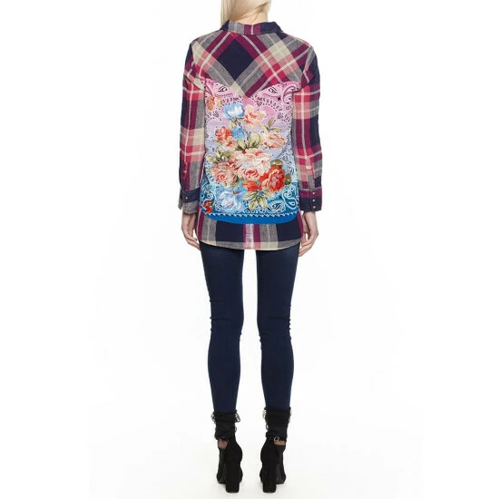 - Long sleeve plaid w/bandana patch on the back, Floral embroidery