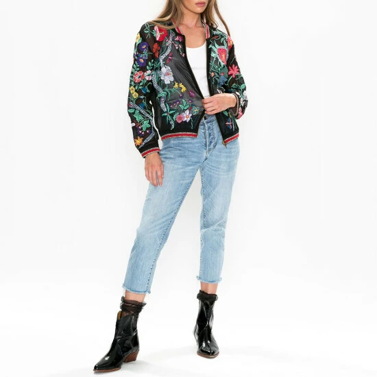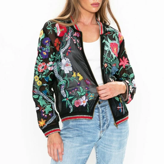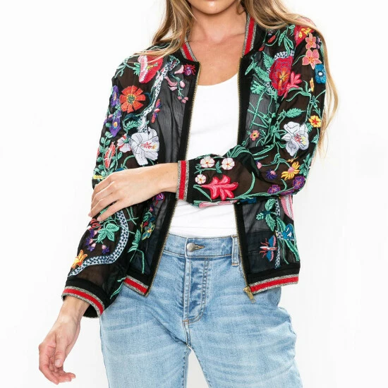 This stunning jacket features beautiful embroidery that is sure to stun.