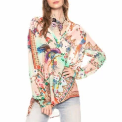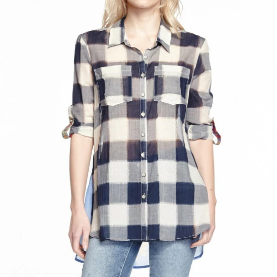 The Michelle R. Shirt features aplaid front with printed back detail contrast.