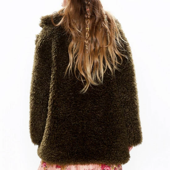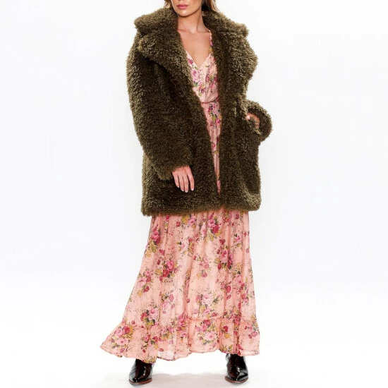 The Fayre Fur Coat from Aratta has a soft fluffy feelwith floral patch and embroidered lining.