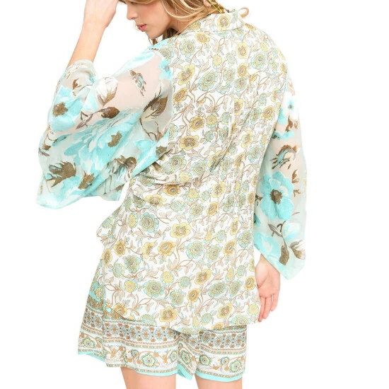 Pair this patterned shirt complete with flutter sleeves with the “Forever Lilies” shorts for a special two-piece set perfect for the summer.