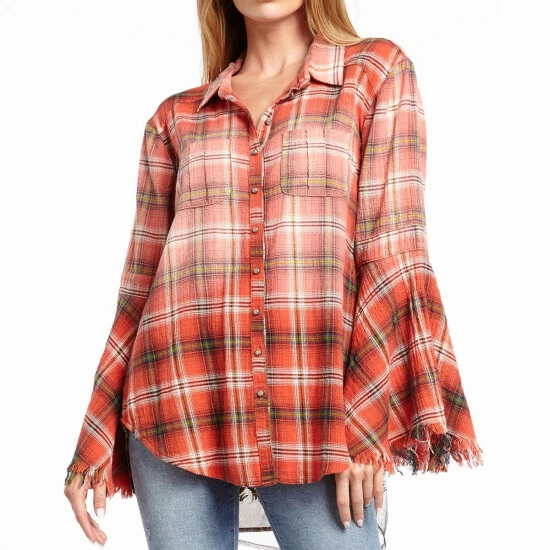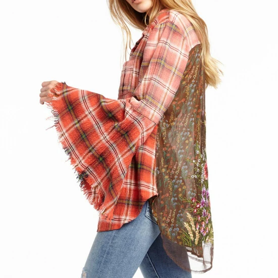 Chic meets casual in this feminine plaid shirt from Aratta.