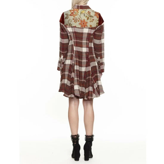 With a ruffle, slightly high/low hem and plaid design, this flattering tunic is beautiful by itself or over your favorite pants.