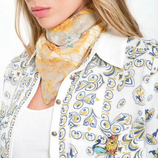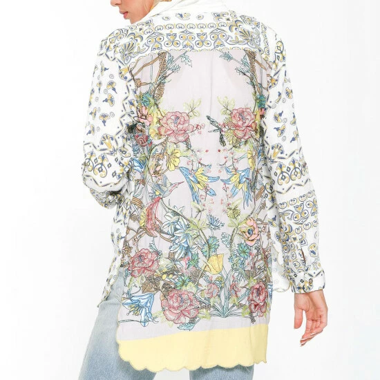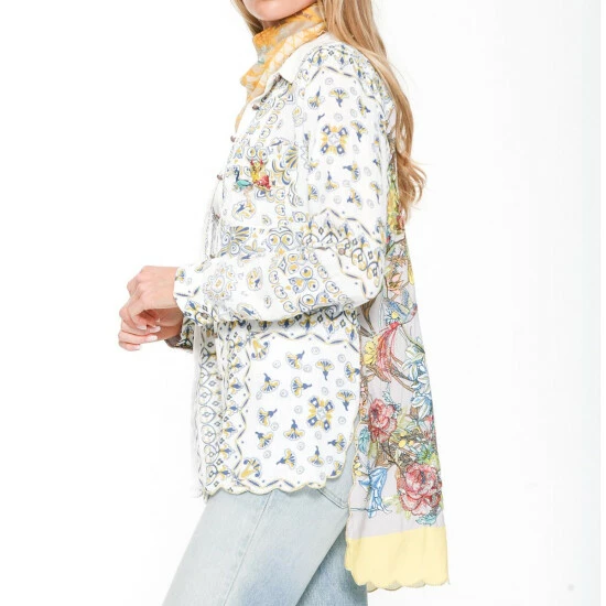 The Sun Is Up Shirt from Aratta features printed fabric with contrast all over.