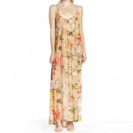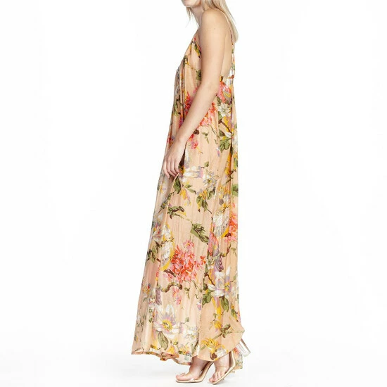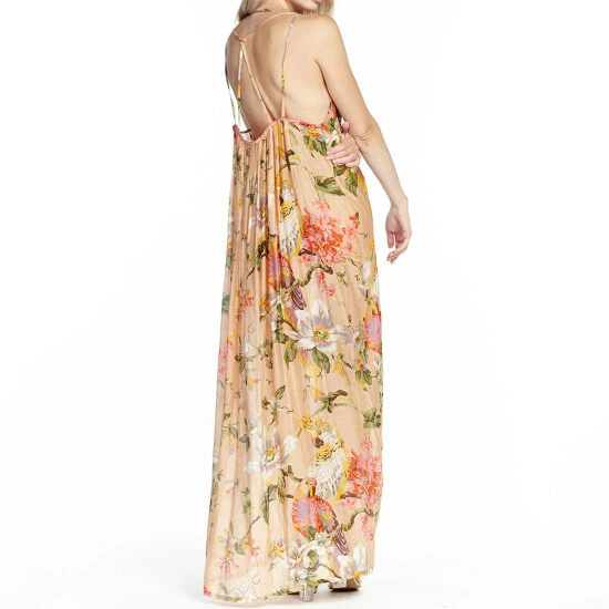 The True To Yourself Maxi Dress features a parrot and floral print and adjustable straps.