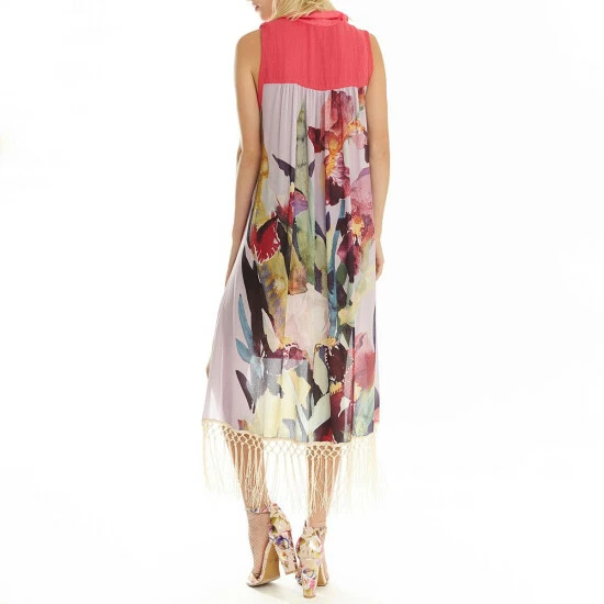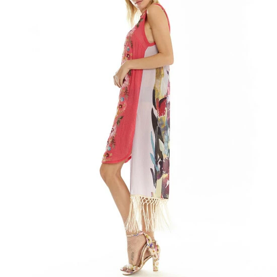 The Washed Irises shirt from Aratta features back hem fringe detail and front embroidery.