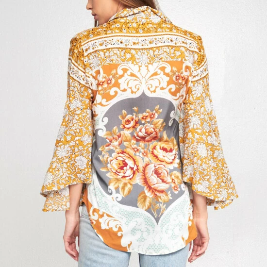 Fluttery bell sleeves steal the show on this bohemian floral print top.